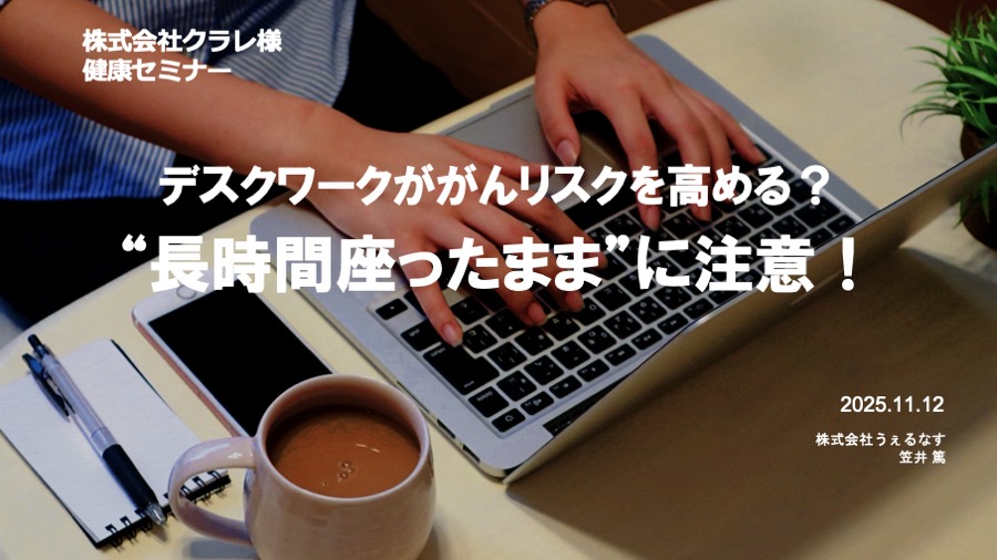 健康経営に取り組む株式会社クラレ様にて、従業員様向けオンライン健康セミナー「デスクワークががんリスクを高める?“長時間座ったまま”に注意!」を実施いたしました。